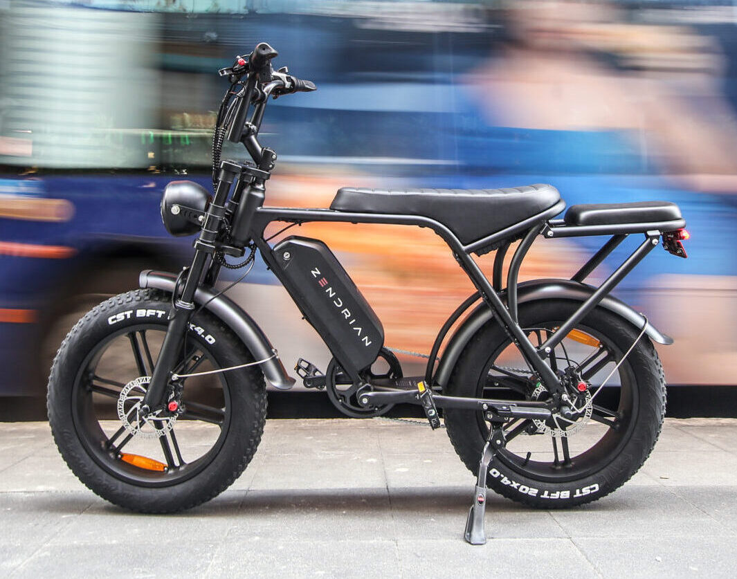 The Explorer e-bike features a sturdy aluminum alloy frame and 20″x4″ fat tires, ensuring a smooth and comfortable ride on any terrain. With a 1100w peak motor power, you can reach thrilling speeds of up to 50km/h. Experience the perfect blend of performance and style with the Zendrian Explorer One.